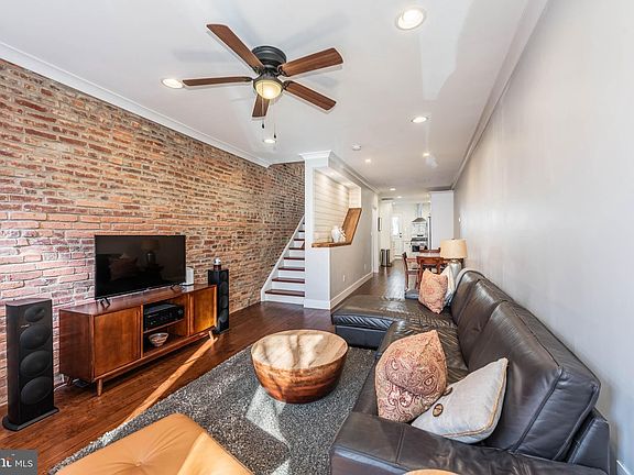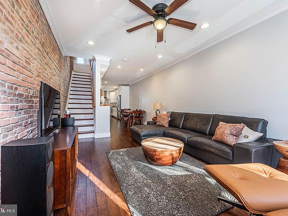 Step inside this stylish Hampden rowhome, offering over 1,600 sq. ft. of beautifully designed living space. The main level impresses with gleaming hardwood floors, a spacious living room with crown molding and exposed brick, and a dining area perfect for entertaining. The kitchen shines with ample cabinetry, stainless steel appliances, and sleek Quartz countertops. Upstairs, the primary suite is a true retreat, featuring a private bath with a glass-enclosed shower. A second bedroom, hall bath, and convenient bedroom-level laundry complete the upper level. The finished basement offers flexibility with an additional bedroom and full bath—ideal for guests or a home office. Outside, a private rear patio leads to gated parking for easy city living. All this in the heart of Hampden, just moments from shops, dining, and the Avenue’s vibrant energy. Don't miss it!