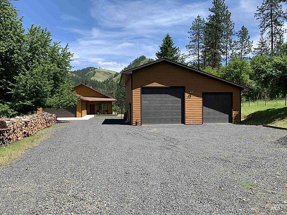 Riverfront property on the Clearwater River with deeded access to the river and pristine sandy white beach. The home is 7 years old one owner and very gently lived in. Three bedrooms 2 baths in addition to a bedroom & half bath and 3/4 bath in the shop. Quality craftsmanship from the quartz countertops, custom knotty alder cabinets, engineered plank flooring, floor to ceiling windows bringing that great view inside. The wrap around covered porch with trex decking great lighting and surround sound.The shop is 36x36 with custom meat cutting room and walk in cooler with Trenton Refrigeration cooling unit. 220 power, Electric heat in addition to a cozy wood stove. 3/4 bath on main level and a sleeping quarter and half bath upstairs in the shop. 11 flat useable acres with wire fencing great for a mini farm. Fenced garden and enjoy the abundance of wild fruit cherry apple and plum trees and the wildlife. Lower elevation sheltered from prevailing winds. Private driveway lined with trees and natures beauty. Must see!