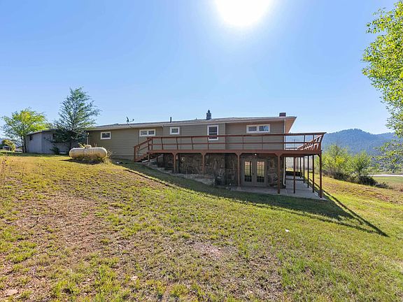 This beautifully crafted 5-bedroom, 2-bath residence offers exceptional views of the Black Hills from a wraparound deck. The .32 acre lot sits up nice and high giving great views of the hills and surrounding area. The main level features a spacious kitchen, formal dining room, and a living area with picture windows, a wood-burning fireplace with stone accents, and built-in shelving. Additional highlights include a formal entryway and convenient main-floor laundry. The lower level showcases newer wood flooring, a large family room with a wet bar, fireplace, walkout access, and a bonus room with a freestanding sauna—ideal for a home gym. The attached, insulated two-car garage includes a painted concrete floor protector and pegboard walls for organized storage. Exterior features include a durable concrete siding and a great 20x10 storage shed. Located adjacent to the city park and the City Library, with schools and highway access just a short walk away, this home combines comfort, functionality, and an unbeatable location. Listed by Stacey Nelson at ReMax Results 605-390-9028.