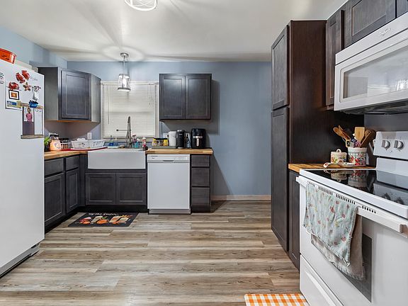 This inviting 2-bedroom, 1-bathroom home offers modern updates and thoughtful features on an oversized lot. Enjoy new laminate flooring upstairs and a beautifully updated kitchen as well as fully updated electrical. The primary bedroom includes an in-room laundry space for added convenience. The open-concept living and dining area is perfect for hosting, while the partially finished basement features ample storage and the potential for more two more bedrooms. Step outside to the fully fenced backyard, complete with a newly installed above-ground pool—your private oasis awaits! The attached one-car garage adds functionality to this move-in-ready home. Don’t miss it!