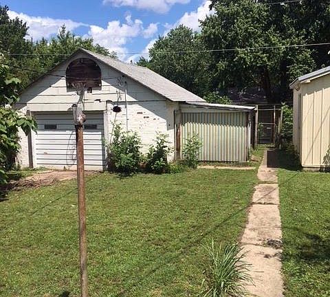 This two story home features a drive through single stall garage with work area, a carport, shed, metal work shed, patio and fenced yard. This home also has off street parking in the front AND in the back. The property was once an apartment house and could easily be restored as such. There are 3 bedrooms upstairs with a good size kitchen (lots of storage)and a full bath that includes a claw-foot tub!! Downstairs you have a living room, dining room, bedroom, kitchen and a full bath. Partial unfinished basement completes this home that has it all !! Priced to sell... this one won't last long. NEW ROOF on the house AND the garage!