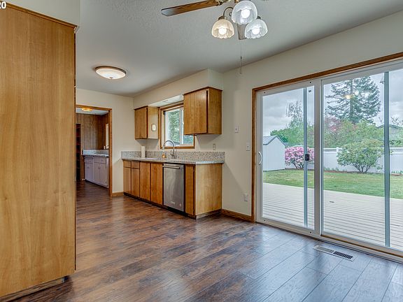 clean split level classic home has 1950 sqft. nice floors four beds 2 full bath rooms. new granite counter tops. stainless sink and appliances ,and extra sink and counter tops and large pantry. slider open to the large deck and private fenced back yard.vinyl windows and gas heat & AC .plenty of storage,extra metal garage in back yard. beautiful house that has fresh paint throughout.one year home warranty to be paid by seller.buyer to confirm school and SqFt. seller is Oregon real estate Broker.