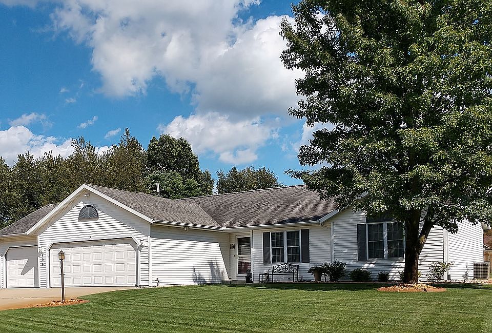 574-238-1573 Three bed room 2 bath with large great room. Cathedral ceilings in great room 24x26 with brick fireplace and custom blinds on window on each side of the fireplace. Oversized three car garage with large access doors and openers. In ground water well for sprinkler system so not paying for city water to water the grass. Central vacuum system for entire house including the garage with all tools and attachments. Mud / Laundry room at garage entry with pantry and closet. Large Master 16x14 with on suite and walk in closet. Over sized stamped brick patio 16x24.Back yard fenced on three sides so could be closed off easily for privacy. Full basement that could be finished off nicely. Reconditioned furnace two years ago and new water heater last year. Roof was inspected and given 10 more years of life. Retired couple moving to Florida so home could be purchased furnished and move in ready. Call to view by appointment only.