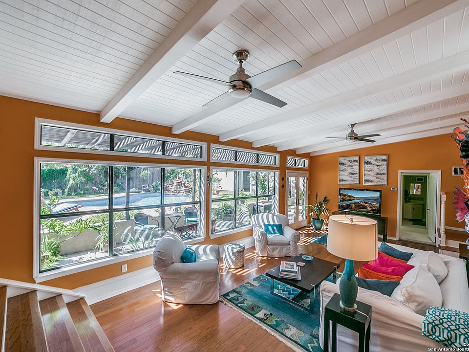 Expect the unexpected when you enter this charmer in Terrell Hills. Nothing boring,nothing dull. It's lively colors & surprising spaces will woo you. Enjoy gatherings by the pool while hearing the soothing waterfall. The den with wall to wall windows offers view of pool & large yard. Natural light flows in to warm the soul on cool days. An outbuilding for a workshop & a shed for storage is all there for you.Poolside 1/2 bath too. Close to Ft. Sam, the Pearl & downtown. Come on over, check it out! Exclusions in additional docs.