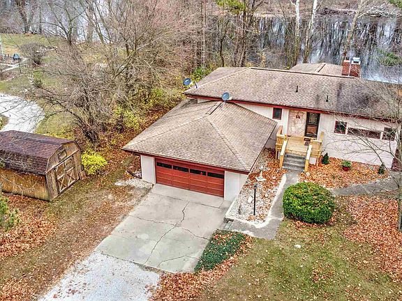 RARE find property offering over 434 feet of gorgeous upper St Joseph river frontage plus, 3.8 acres of partially wooded property! The setting and the views will melt your heart! Attractive modern style exterior with welcoming and newly landscaped entry. A great floor plan boasting amazing river views from almost every room. The walkout level offers a 3rd bedroom and a 2nd full bath plus, family room with wood burning fireplace. Wrap around decking on the main level and concrete patio off the lower level family room. There is even a concrete seawall, small outbuilding and pond! A fabulous waterfront investment!