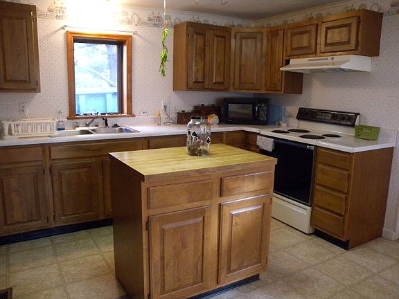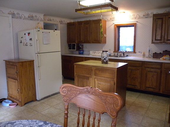 This older home is in good condition. Has an enclosed porch, vinyl siding & vinyl windows. Wooden cabinets in the kitchen. Built in cabinet in kitchen. Island in kitchen. Large backyard