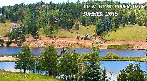 Rare opportunity for a Rocky Mountain property on one acre of Paradise, overlooking TWO lakes! Main level living offers large Great Room with floor to ceiling windows to enjoy the stunning views. Great Room has a custom brick woodburning fireplace with insert, vaulted ceilings and a walk-out to covered deck for your lake view. Great room is open to the Kitchen and dining area. Kitchen has hardwood floors with center island and breakfast bar, all appliances, nice size pantry, desk station, abundance of cabinet space and skylight. Sunroom offers a retractable skylight and walk-out to another wood deck .. the Sunroom is ideal for all of your plants. The fabulous Master Suite is very spacious with a large walk in closet, sitting room can be used as a dressing room or home office. Stone, wood burning fireplace (with insert), connected to a Five piece Master Bath that offers double sink & vanity, large free standing shower, retractable skylight and a relaxing view from the oversized jetted tub. Laundry on the main level offers washer and dryer (dryer is gas). Guest half bath completes the main level. Hot water is supplied by a Rinnai continuous hot water system for those long showers. Lower level has 2 additional bedrooms, mud/utility room and a 3/4 bath. One of the bedrooms has French doors, built in shelving and walk out to covered patio where you can sit on the quaint porch swing to look at your lakes. Three car garage is extra deep offering great space with shop area. 1 bay is best suited for ATV's, bikes or snow mobiles as it is not a full car size. Your acre offers a combination of matures trees, open meadow, hiking trails and an archery range. Neighborhood borders Nat'l Forest where you can hunt/camp/off-road to your hearts desire. Your private lakes offer trophy Trout fishing. Great view of Pikes Peak from mailbox. Don't want to miss this one!