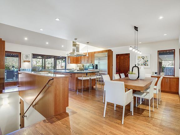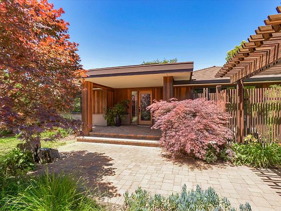 Tucked in a private setting with foothill views, this home combines California Craftsman style, zen landscaping, and organic architecture. Quality and craftsmanship are evident throughout, alongside sustainable features like solar power, EV wiring, and LED lights. A sky-lit entry flows into an expansive living room with fireplace, versatile dining, and showstopping island kitchen with granite, cherry cabinetry, and premier appliances. All baths enjoy granite, Spanish porcelain, and radiant heat. Each bedroom features walk-in closet storage, and the master suite has two closets and a luxury bath. The lower level offers a large bonus room for games, media, or office. The garage is fitted with California Closet storage, workbench, French doors, and more. Enjoy automatic shades, central AC, a vegetable garden, barbecue, fire-pit, and entertaining deck with hot tub, heaters, and serving bar. Within moments are Woodside Village, Interstate 280, and Woodside Elementary (buyer to verify).