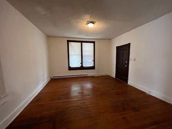 Very spacious first floor unit in a duplex. Property has all hardwood floors, enclosed front porch, with on and off-street parking. Rent is $950.00 with an additional $50.00 Utility Fee. Water, Sewer, Trash included, tenant pays electric. Forced air wall heaters.