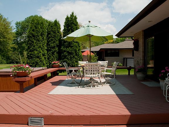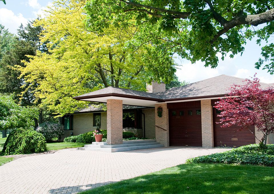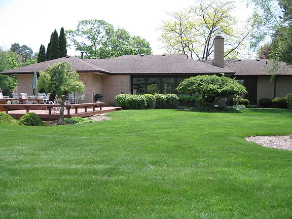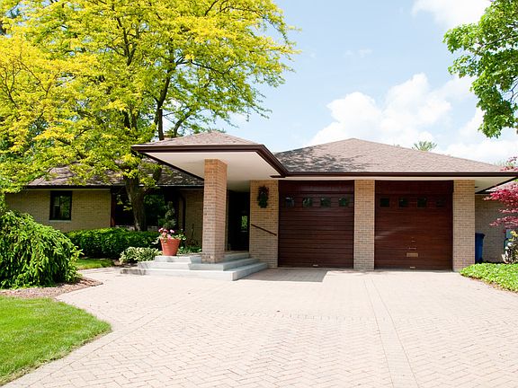 You feel like you are living in a work of art. Custom designed with style and flair by Alden Dow (who studied briefly with Frank Lloyd Wright). Magnificent lot with uninterrupted country club view. Unique features are included in this mid century modern style such as many edge grain fir built ins and trim, curved details, brick exterior, wall to wall windows that focus on the outdoors, a covered brick entry portico and a herringbone brick paver driveway. Cheer the golfers on with the Country Club's # 1 green in view. This home has been in the family since 1941, built for the Morrison's in 1939. Fabulous entrance through an oversize front door into the foyer that leads you toward the spacious dramatic living room with gas fireplace and L shaped formal dining room with buffet. The newer kitchen with colorful glass accents has lots of pizzazz is adjacent to the family room. Relax on the 2 tiered deck with hot tub gazing at the gardens. Basement has rec room, egress bedroom and bath.
