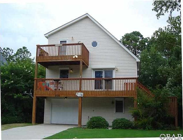 Lovely 3 BR saltbox close to everything... shopping, beach, sound, movies and restaurants. Low maintenance vinyl siding and hurricane shutters. Dry entry through garage leads to rec room. Large rec room on ground level has access to yard and garage. Underground fence in front(wired, no box) or you can do "the Ocracoke thing" and put up a white picket fence with flowers around for your dog to run around in. Copy of New Elevaion Certificate (7/16/13) in Associated Docs shows ground floor enclosure is built above base flood elevation. Seller says property has never flooded in storms thanks to the builder having built up the yard. Outdoor shower, fish cleaning table, shed. Yard bulkheaded to prevent erosion. Voluntary Homeowners Association. $30/yr gives you use of subdivsion's private beach access and sound access. You're also not far from public boat ramp on Bay Dr.