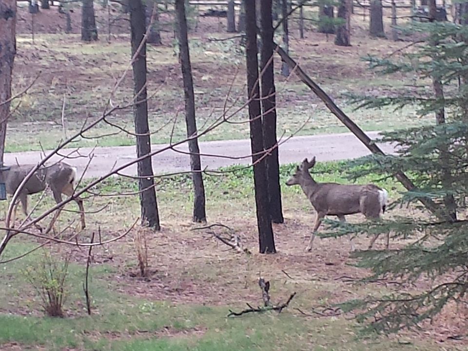 Beautiful ranch cedar sided home with attached 2 car garage. Large 2 level rear deck the full length of the house. Outdoor hot tub. Detached oversized 6 car garage and a detached storage building. 2 extra large family rooms downstairs with a wood burning fireplace. Basement fully finished. Gas fireplace main level. RV parking and power to parking site. New 30 yr roof and skylights, installed April 17. Over 4.5 acre lot with trees and tranquility and just 15 minute drive into Colorado Springs and close to the Denver Metro Area.