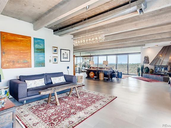 Large one of a kind penthouse. End unit with balconies on all three sides with views of Downtown Denver and mountains. This penthouse has a spacious open floor plan with two large living areas to decorate and use as you wish. High ceilings with exposed beams, fireplace, recently installed cork flooring that is beautiful and functional. Updated open kitchen with breakfast nook and access to large pantry and laundry. Two large bedrooms with access to balcony. HOA dues include heat, A/C and other amenities. Great location near I-25, 225, Light rail and walking distance to stores, restaurants, gyms and entertainment. Did I mention the views? Catch the sunrise, sunset and everything in between in your luxury penthouse condo, Sprawling floor plan.