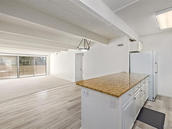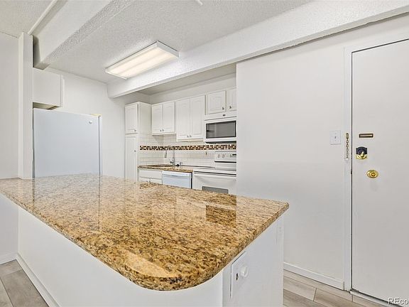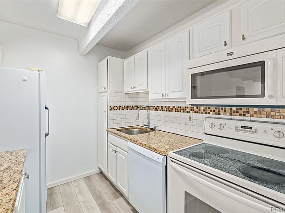 Welcome home to this beautifully maintained end unit condo. Open floor plan with tons of natural light. Large sliding glass doors lead to balcony. Two large bedrooms with plenty of closet space. Spacious kitchen with granite countertops that opens to dining area. Vinyl floor in kitchen and dining, tile flooring in bathrooms. Primary bedroom has ensuite bathroom and balcony access. Large closet in hallway provides plenty of storage space. Private storage unit on lower level allows for even more storage. Easy access to I-25. Close to RTD. This is a secured building. Resident amenities include Onsite Management, Snow Removal, Fitness Center, Pool, Hot Tub, Billiards, Storage Unit in building, Salon, Sauna, Barbecue Area, Tennis Courts, and more! Access to Garage, Laundry and Storage Unit are on lower level of the building. HOA offers parking lease options at $20 (open) or $50 (garage) per month. Don't miss your opportunity to own this gem today!