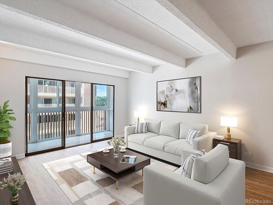 Opportunity knocks with this priced to sell 1b condo at the Hampden East Condominiums! Upon entering the main building you'll be welcomed by a great room with old world charm and character. Enjoy conversations with fellow owners around the fireplace or grab a book from the library and relax in one of the many reading nooks. Don't miss the fitness center and pool just off the main great room! Updates in the unit include new paint, flooring, and an open floor plan between the dining and living areas. One of the main benefits to this unit is the exterior patio is enclosed, with windows that open, to allow for year round enjoyment with great views of the mtns! At only 149k this unit is priced to sell, check it out soon!