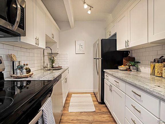 Beautiful, move-in ready, remodeled end unit home! Amazing view of DTC and the mountains from your private balcony*Open floor plan with spacious living room and dining area, perfect for entertaining and easy living*Remodeled kitchen with granite countertops, cabinets and stainless steel appliances*Large primary bedroom with huge closet and private, full bathroom with updated vanity and lighting*Extra storage and linen closets in hall*Care-free living with secured entry lobby*Pool, Billiard Room, Fitness Center and more! Great location near DTC and I25.