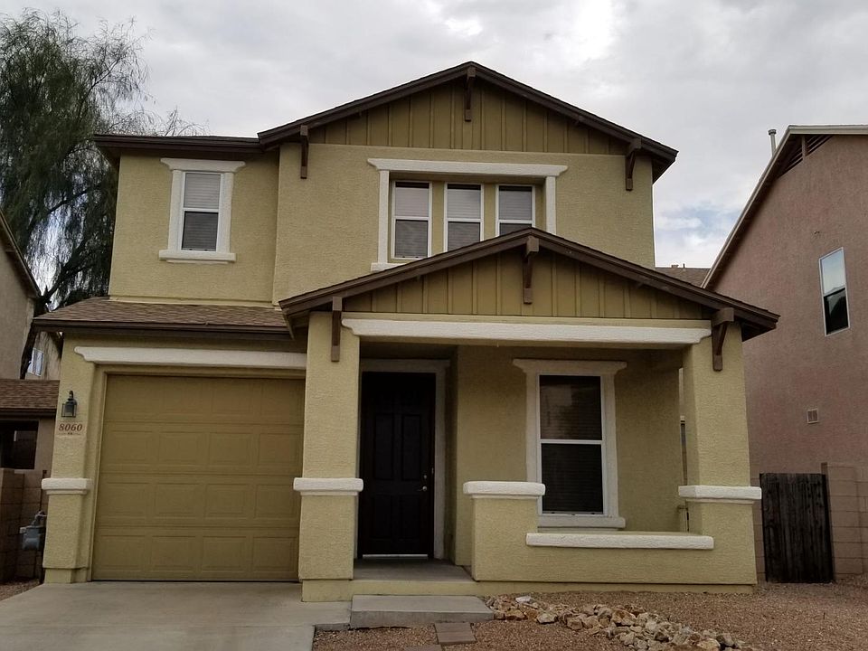 This 3 bedroom 3 bath 2 story home move in ready home w/lots of upgrades, the downstairs has high ceilings, Tile floors in living area, open kitchen to family and dining room , half bath downstairs is great for guest. All Bedrooms & Laundry room are upstairs. Nice mountain views from master bedroom , spacious walk in closet, charming front porch. easy-care landscaping both front & rear. This small subdivision has a nice play area and block away from La Paloma Academy charter school, great proximity to Davis Monthan, shopping, schools, & parks ...