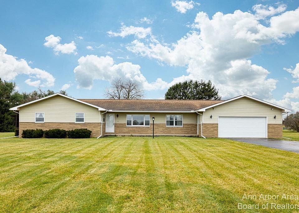 Ranch with first floor laundry. Spacious 1820 sf, 4 bedroom 2 bath on 1.69 acre lot. Double deep attached garage gives plenty of work and storage area and keeps you out of the snow and cold. Formal dining room plus eat in kitchen, family room, living room, basement and playhouse. So much room to spread out and enjoy. Saline schools, York Township taxes. Minutes from shopping, but country setting. Your updates will make the space your own and build equity in your investment. No HOA.