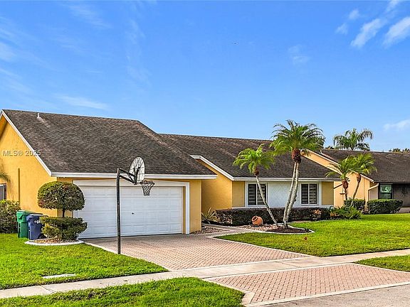 Welcome to your new home in the heart of South Florida! Enjoy peaceful mornings with coffee in your spacious backyard overlooking a private pool. This beautiful 3-bedroom, 2-bath residence features an open floor plan with vaulted ceilings, a formal living area, a bright family room, recessed lighting, and elegant wood-look tile floors throughout. The kitchen comes equipped with new appliances, including a refrigerator, washer, and dryer. A roomy 2-car garage adds extra convenience. Ideally located near top dining spots, Sawgrass Mills Mall, major highways, beaches, airports, and downtown this home combines comfort, style, and location perfectly. Schedule your private showing today! Minimum credit score: 650.