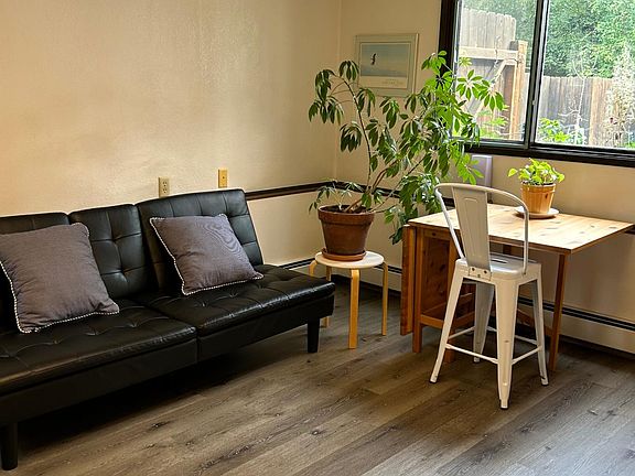 Bright and Sunny studio apartment in quiet and safe neighborhood, close to trails. Unit is furnished and kitchen has a mini-fridge, hotplate and toaster oven. Laundry available on site and all utilities included. Looking for quiet, non-smoking renter to enjoy this space. Suitable for 1 person. No pets. Owner lives on site. Owner pays all utilities. Rent on a month to month basis. No smoking, including e-cigs and must respect 10 pm- 7 am quiet time. Shared laundry and parking space in driveway included.