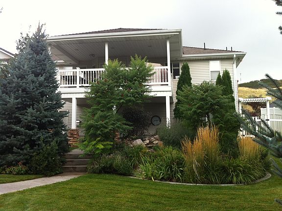 NOTE: Zillow price estimate is based on less than 1800 finished s.f. and 3 bedrooms; We have 3500 s.f. and 6 bedrooms! We are selling below cost! Custom rambler with a professionally landscaped backyard for you to escape from the cares of the world or entertain family and friends. Large covered deck with a view toward Weber Canyon. The feel of being in the mountains with 2 waterfalls, 2 natural gas fire pits and a privacy back yard. Great location in a quiet cul-de-sac against the mountain in South East South Weber. Main floor includes master bedroom, guest bedroom and 1 bedroom/office with 2 entries; 2 ½ baths, Kitchen/Dining Area, Great Room, and Mud/Laundry Room. Downstairs (100% finished) includes Kitchen/Mother-in-Law apartment, 3 bedrooms, Large Family Room, Finished Storage Rooms, and a daylight walkout basement to a covered patio. Other interior features include: 2 gas fireplaces 1 main and 1 downstairs, New “Top of the Line 98% efficient Lennox Signature HVAC with icomfort Wi-Fi thermostat; 18 Seer AC, New Rheem efficient water heater, Pure Tel watersoftner, Vacuflo Central vac, ceiling fans in all rooms, Gas Range, Gas plumbed to deck for barbeque. 220 wired to garage, workbench and cabinets in garage. Exterior features include large covered trex deck with maintenance free vinyl railings. Bearing Peach and Apricot trees, strawberry and raspberry plants. Front all brick, rear vinyl siding. Flag Stone around natural gas fire pits. Solar umbrellas (illuminated at night) designed into the back yard. You will fall in love with this home.