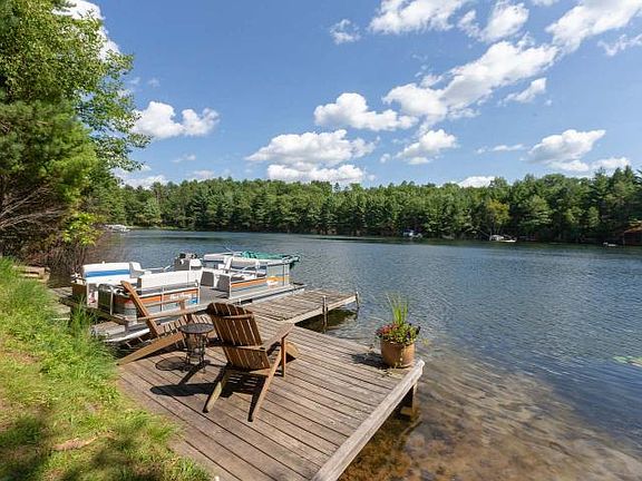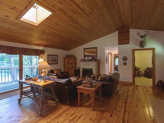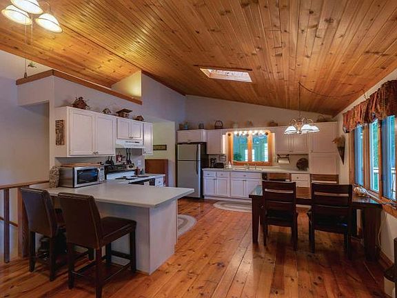 Turnkey North Two Lakes ranch style home available for the first time. North Two Lake is a 150 acre, full recreation lake w/crystal clear waters & depths up to 42', w/a channel into South Two Lake. Main floor living w/ 3 spacious bedrooms & 2 full bathrooms. Open concept w/pine vaulted ceilings & floors, & great room w/natural gas fireplace. Beautiful lakeviews from the 266 sq ft 3-season room & the deck, which runs the entire length of the house. Bright, cheery kitchen w/skylight & eat-in breakfast bar. Large laundry room w/folding counter & add'l cabinet & closet storage. Full, partially finished basement w/dry bar & rec room w/pool table (included). French doors lead to lakeside covered patio & to the sandy shore, pier & 2000 Suntracker Pontoon & aluminum fishing boat (also both included). Add'l features: att'd 2 car garage w/floor drain, lakeside shed, off a paved town road close to town. Move in & begin enjoying all the amenities this home & the Northwoods have to offer.