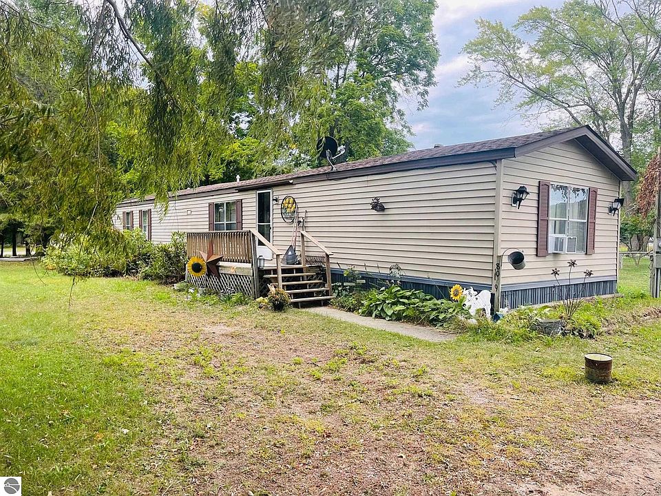 Great rural setting and country side views compliment this 1991 charming 3 BR, 2 BA manufactured single wide home located on beautiful rural 1 plus acre parcel just North of Central Lake Village and just down the street from Benway Lake. Features include primary bedroom suite w/garden tub and shower plus walk in closet, newer flooring and furnace, back yard deck, fenced in yard, all appliances and large storage shed. All at an affordable price!