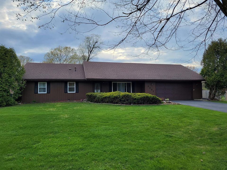 Freshly painted ranch home on over a 1/2 acre corner lot! One level living with a huge fenced back yard. Open concept living room and kitchen. Gas fire place for a warm gathering place. New windows, dishwasher, range, garage door, kitchen and bathroom floors. Refrigerator, front door, sliding door and driveway new in the last few years. Come make this house your home!