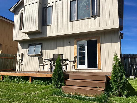 Great South Anchorage 4 bedroom home. View of the mountains from upstairs living room. 3 bedrooms & 2 full bathrooms upstairs, 1 bedroom and 1 full bathroom downstairs. Home is currently set up with an Airbnb unit. Beautiful laminate floors throughout. Updated bathrooms. Spacious kitchen it open to living area. Large & completely fenced back yard with nice deck great for entertaining.