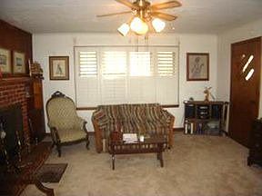 REDUCED!! A GREAT BUY!! Good older ranch style brick home features new front deck entry into both the Den & Living Room. LR has brick fireplace w/ built in bookcases & large picture window w/ fabulous Plantation Shutters! There is a roomy kitchen w/breakfast area that has lovely china hutch & windows overlooking the back yard & a nice pasture view. The cozy Den is suited for a possible woodstove & has more built in bookcases & shutters. There are 2 roomy BR & 2 BA...one w/ washer & dryer. Much of the home has new beige carpet (some over hardwood flooring). The oil furnace & central air were added in 2010. The breaker box was updated in 2010. Part of the crawl space has concrete floors for more great storage. The large backyard features a Gazebo getaway & 2 car detached garage w/ additional 2nd level storage.