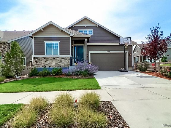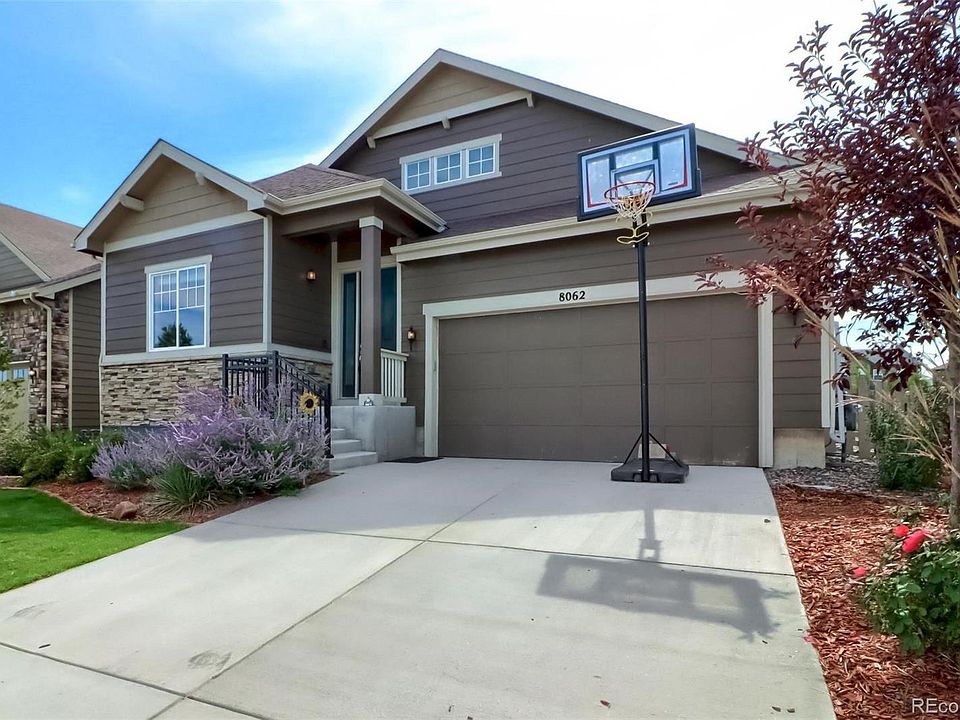 A beautifully designed Ranch style home that can accommodate many configurations of a family in Sterling Ranch! Mountain views and across the street from a park! This floor plan is perfect for entertaining or everyday living. Everything you need is on the main floor! The kitchen features a huge quartz island perfect for entertaining, stainless appliances, double ovens, a gas range, an eat-in dining space, and a walk-in pantry. The main floor great room boasts a gas fireplace, is wired for surround sound, and is flooded with morning and afternoon light through large windows. Just a short distance away from home is the new recreation center complete with meeting rooms, pool, and a gym. Step out onto the large backyard patio to drink your morning coffee with a view of the mountains, along with a firepit and artificial turf. The main level has an office, and 2 bedrooms including a beautiful master suite. The primary bedroom has a 5 piece ensuite with glass shower, garden tub, and a walk-in closet. The fully finished basement features 2 additional bedrooms, 3/4 bathroom, bonus nook, huge family room for entertaining (and the big screen television will stay), and ample storage. And let's not forget the technology of this home. In addition to the solar panels that reduce your electric bills significantly, the house has Steward Smart Home, Nest Cameras, automatic sprinker system, and an installed security system.