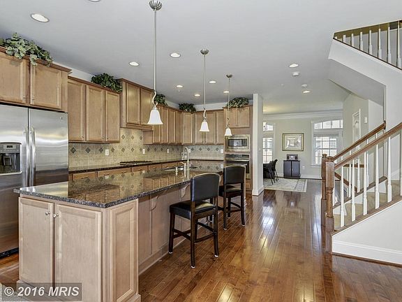 Stunning townhome in Maple Lawn with over 3,000 sgft of living space and loads of decorative detail! Gleaming hardwood floors, gourmet kitchen w/an oversized island, gas cooktop, stainless steel appls, 42~ cabinetry, granite& decorative lighting. Huge master suite w/sitting area, dual walk in closets& luxury bath. Bedroom level laundry. Main level 4th bedroom or opt bonus room& full bath. Amazing!