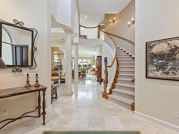 Spacious & elegant Vizcaya at Bay Colony lakefront home. Featuring oversized windows allowing in tons of natural light, this 4-bedroom with 3 and 1/2 bath home has updated Winguard impact glass sliding doors installed by Novo Construction, a new roof in 2014 including underlayment & strapping, a recently resealed pool deck, Brookhaven kitchen cabinetry, and more. Enjoy the privacy & convenience of a first-floor master bedroom suite with an additional guest bedroom on the main level and 2 more guest bedrooms upstairs. The open and picturesque pool area has a wonderful sense of privacy. Bay Colony residents enjoy a private newly renovated beach club and access to all of Pelican Bay's outstanding facilities.
