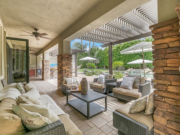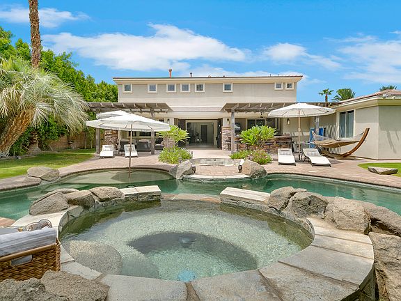 Beautiful home, true entertainers estate in Indio located in The Orchard gated community, right near polo fields, 15 min from Agua Caliente Casino. This stunning two story home comes turn-key furnished, bedrooms freshly painted and newly furnished. Backyard has saltwater pool and spa, outdoor mists surround the gas bbq area and living space with outdoor television. Cozy up around the fire pit at night and enjoy some s'mores! Sliding doors open to create combined indoor and outdoor fun for the whole family, large living areas in open floor plan, an open kitchen with double oven, and lots of natural light. High Ceilings, Tile Flooring, Newer Appliances, Granite Counter Tops Indoor bar and billiard room equipped for your family. The home is 4 bedrooms + a loft that adds as an extra room making 5. Master bedroom has a balcony, his and hers walk in closets and sinks in master bathroom. Has an attached four car garage with treadmill for morning workouts. Close to many shopping centers and markets. This tropical oasis welcomes you! Contact Arsine with any questions.