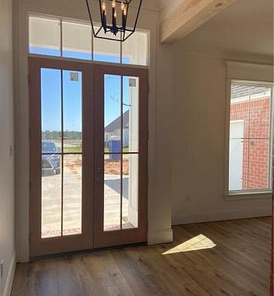 New BMI home completed mid-May! 4 bdrms/2 bath; sep office with built-in desk; kit with large contrasting island, Quartz, upper cabinets with glass fronts & lights; wd floors in all living areas; free-standing tub in primary ba; dual vanities in 2nd ba; mudrm; upper cabinets in laundry; cov patio overlooking large rear yard; brick & Hardy ext; ALL BRICK (INT/EXT) WILL BE SACKED WHITE;FRONT DOORS WILL BE PAINTED;BEAMS STAINED. Fld Zone C; great sch dist! 2 subd pools, pavillion, walking/hiking trails.