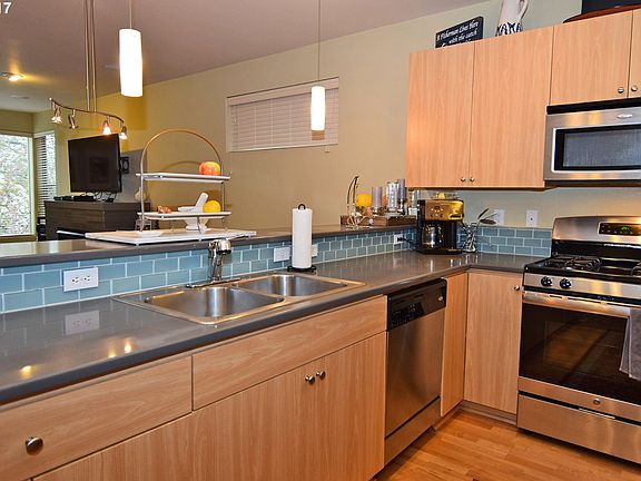 Desirable DWTWN St Johns/Blks from Forest & Cathedral parks, local eateries, Friday Art walk & movie theater. Near DWTWN/NW PDX, transit/freeways & hiking. Move in ready condo w high end finishes-caesarstone countertops/tile backsplash, hardwds on main, ss appls,surround sound, berber carpet up, AnnSacks custom fireplace tile surround, A/C, custom tile in upper baths, master ensuite, & huge walk-ins! OPEN 7/26 4-6, 7/29 10-12, 7/30 1-3