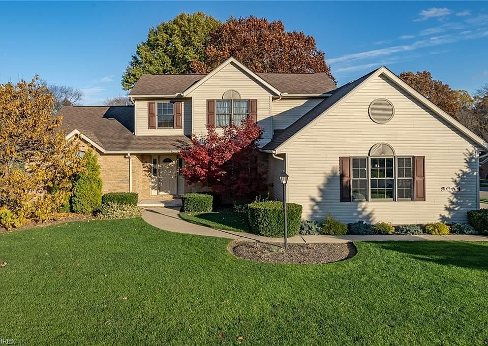Welcome to this one owner home in a very private neighborhood and so convenient to everything North Canton has to offer including the wonderful schools. Beautiful hardwood floors great as you enter this well cared for spacious home. The first floor Master bedroom features a large master bath and walk-in closet. The spacious family room with vaulted ceiling and cozy fireplace connects to very large kitchen with center island and ample counter space. The dinette opens to large deck convenient for entertaining. Rounding out the first floor is a formal dining room, plus a large laundry room with utility sink and cabinets for storage. The second floor has 3 nice size with ample closet space and a large full bath. The basement is finished to perfection with a gas fireplace, media area, custom designed bar and full bath. This is one fabulous basement ! Home features 3 car side load garage and sits on a quiet, tranquil, dead end street. Pride of ownership shows and the seller hopes that the next owner will love it as much as they have.