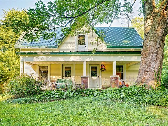 Discover this hidden gem in Owen Co. on a beautiful 35-acre parcel, partially wooded for privacy. A meandering gated driveway leads you to the original 1880s farmhouse, a charming story-and-a-half home perched on the rolling hills of this picturesque property. This farmhouse has been preserved with valuable upgrades, retaining its original hardwood floors, tall ceilings, and an abundance of natural light through updated energy-efficient windows. The walls are adorned with bead board wainscoting, adding a touch of classic charm. Enjoy a seat on the porch, take in the native hydrangeas & majestic maple tree in the front landscape before entering the front door to the large living room featuring an original brick fireplace. The main floor master bedroom is spacious and includes an additional front door entrance. The formal dining room has built-in cabinetry and shelving, a long wall of windows, & an intricate textured wallpaper ceiling. In the center of the home in addition to the staircase leading up, a Fisher woodstove on a brick hearth is ideal for cozy evenings. The tastefully renovated eat-in kitchen features views of the backyard, vaulted ceiling, new beadboard cabinetry, SS appliances, & LVP flooring. Laundry room includes a utility sink & extensive cabinetry matching the bath. Utility/mud room is a versatile space w/ concrete floors, several closets, countertops, & dry sink. The upper floor has 3 rooms w/ dormered ceilings, the loft offering a large double closet for storage for the entire upstairs. The second bedroom not completely renovated, and a third larger room setup as a bedroom. Note due to the period of the home, not all bedrooms offer closets. Outdoor features include 30x40 pole barn built in 2020 with a lean-to along w/ a workshop building 24x30 built in 2012, perfect for avid woodworkers. Partial concrete silo has steps leading to an observation platform with meadow views.