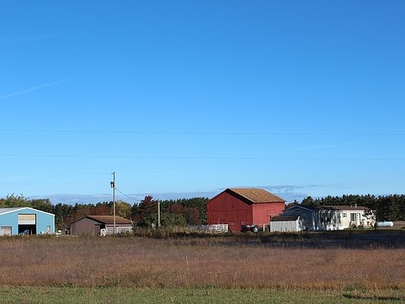 Horses welcome on this 10+ acre property that includes: 50X60 Steel Pole barn with electricity and cement floor, 24x40 Steel Pole Barn with cement floor and electricity, 30X60 Wood Barn(original to property)also has electricity. In 1999 the Farm house was torn down a Mobile home was set in its place with a new 5"well & 1200 gal septic.