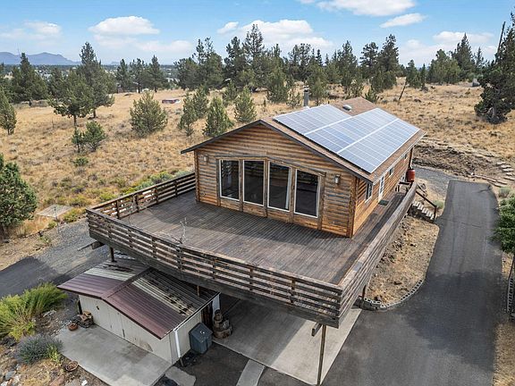 Looking for the perfect complement of nature, recreation, low energy bills and work-from-home connectivity? You've found it! Nestled in picturesque Crooked River Ranch, with easy access to endless outdoor activities, is this owner designed, custom frame-built home, now on the market for the first time. Boasting 2 bedrooms, 2 bathrooms and 1344 sq ft of thoughtful living space, this home offers panoramic views from its large deck and picture windows. Incredibly reliable, fast internet is provided through Webformix making it an ideal work from home opportunity!! Energy-efficient with leased solar panels and many extra measures taken, it ensures lower year-round electricity bills. Inside you'll be greeted with vaulted ceilings, a comforting woodstove and an open floor plan with galley-style kitchen for good flow. Situated on just over an acre, and lovingly surrounded by birdhouses, native plants and flowers, you will find a paved driveway, RV parking, a one-car garage and covered parking