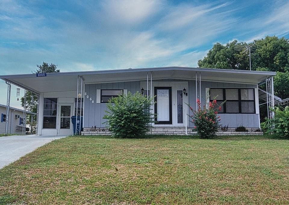 Seller is motivated--bring all offers!! BRAND NEW ROOF with warranty and new aluminum siding make this updated open home with laminate floors, modern trim, and light colors a winner! This 2 bedroom 2 bathroom golf course home with updated baths and plenty of room for your furnishings is move-in ready! This home has generous closets in both bedrooms and great natural lighting. It has a golf cart garage too. Best of all, you own the land with low HOA fees, including a community pool, social clubs, golf, and much more. Plus, all furnishings and decor in the pictures convey!