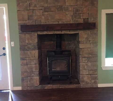 • Built-in Features, Ceiling Fan(s), Eat-in Kitchen, Pantry, Solid Surface Counters, Wood Burning Stove