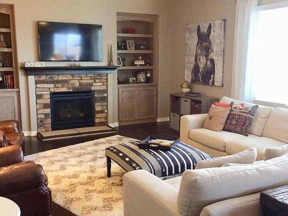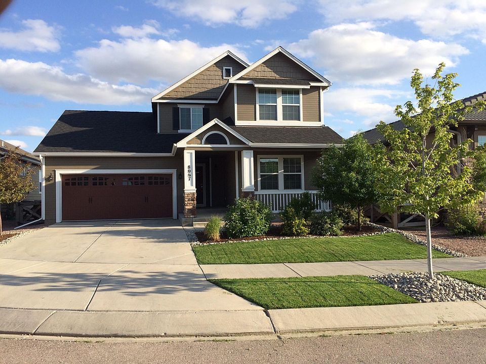 Available starting in July 2025. Beautiful 5 bed, 4 bath house on cul-de-sac with great views of the front range available for rent early July in coveted Banning Lewis Ranch neighborhood. The house features 3,287 finished square feet, a large great room with open kitchen and dining, and fully finished walk out basement. Kitchen is upgraded with granite counter tops, gas range, stainless steel appliances, large island, and stone backsplash. Extended living room has a gas fireplace with custom built-in bookcases. A full bath and bedroom/office round out the main level. Upstairs is a spacious primary suite with a vaulted ceiling, 5-piece bath, and walk-in closet. Also upstairs are two additional bedrooms, a full bath, and the laundry room. The large open basement is bright and airy with an expansive rec room, and includes another bedroom and full bath. The home has AC and a humidifier system. The two-car garage has a Nema 14-50 50A outlet for Tesla or other electric vehicle charger. Plus a nice shed in backyard for extra storage. Neighborhood includes D49 Charter School, Ranch House, two pools, fitness center, lighted tennis courts, multiple pocket parks/playgrounds/basketball court, dog park, and miles of running/walking trails. Close to military base/post (Peterson, Schriever, Air Force Academy, and Ft. Carson). Rent includes HOA fee, access to all neighborhood amenities, and trash/recycle. Minimum 12 month lease; multi-year preferred. Pets considered on a case by case basis with increased deposit. The house is occupied and we are not scheduling any walk-through except on a select basis. Please contact for link to virtual walk-thru.