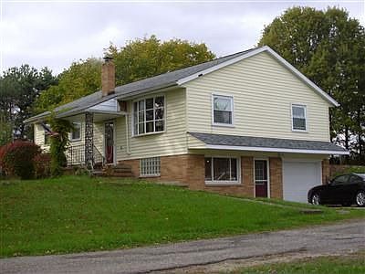 Motivated seller! Well maintained 3 BR. Raised Ranch offers many updates situated on almost 3 acres! 1-Car Att. Gar. w/Opener& 3 car Det. Gar. w/Elec! Mechanical updates include: NWR furnace '06 furnace plumbed for C/A! NWR windows, siding& gutters! NWR Carpet '06! H2O system '06! Sump pump '07! Cistern Rebuilt '06! Kitchen w/Spectacular views& features a breakfast nook, all appls. stay! Living Rm w/NWR carpeting '06 built-in bookcase& NWR front storm door! Dining Rm w/NWR HDWD FLR& spectacular views! LG. 1st floor bath offers ceramic tiles and LG. linen closet! BDRM #1 w/wall of built-in drawers& cabinets! Spacious 14x8 - 1st FLR Laundry Rm offering built-in countertop for convenience& cabinets for storage! Walk-out lower level family Rm features a wood burner!Entire lower level is currently being used as a teen suite! If you prefer to use propane over the existing electrical heating,tank can be delivered, all hookups are present! 1 YR. Home Warranty!