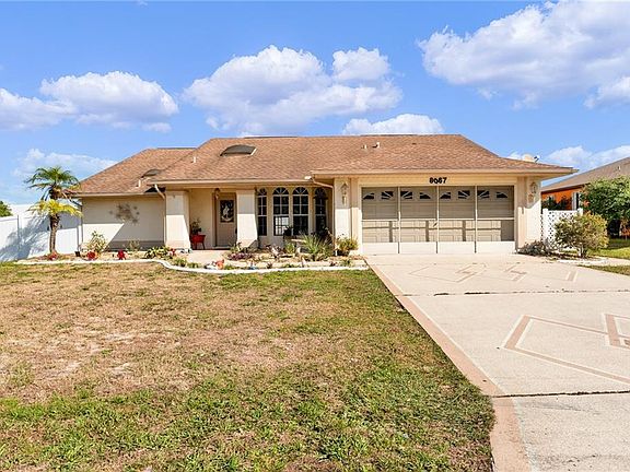 Your new life awaits you in this wonderful 3-bed, 2-Bath Pool Home with 2-car garage on over sized double lot! Charming pretty stained glass front door leads to entry foyer and spacious great room with vaulted and beamed ceiling. Beautiful granite counter tops grace the lovely kitchen complete with pantry closet, built-in desk, breakfast bar, large breakfast nook and tile flooring. Massive enclosed porch leads to covered lanai and unique built-in lap pool with resistance jets. Master Bedroom Suite showcases vaulted ceiling, plant shelves, dual sinks, garden soaking tub and large walk-in shower. Large backyard with newer privacy fence. Interior laundry. A/C 2016. County has designated this property as an unrepaired sinkhole, however, 3rd Party Engineering fim disputes sinkhole designation.