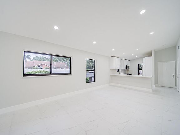 Welcome to this beautiful FULLY RENOVATED (2025) residence in the desirable Eastgate of Whisper Walk!. New impact windows and slider. New gourmet chef dream kitchen. New SS appliances. New large porcelain tile floors. New Carrier AC. New modern bathrooms. New water heater. New Interior and exterior paint. New roof!. This is a 2-bedroom, 2-bathroom, with air conditioned bonus room for office or 3rd bedroom, and a garage, stunning CORNER villa offers maximum light and great privacy with no front neighbors and lots of guest parking near!. Indoors, it features a spacious, open floor plan that gleams with natural light thanks to elevated ceilings and large hurricane impact windows and doors. As you step inside, you'll appreciate the bright and airy atmosphere created by freshly painted interiors and elegant recessed lighting The living area flows seamlessly into a modern kitchen, complete with stainless steel appliances, stylish quartz countertops, and abundant storage, including a pantry. The master bedroom suite offers a generous space, double closets, and an en-suite bathroom featuring a dual sink vanity with quartz countertops and a step-in shower. Additional highlights include a brand new washer and dryer conveniently located inside, as well as attic access for extra storage. A bonus room which can be use as office or 3rd bedroom if you prefer opens to a paved patio surrounded by a privacy fence and lush hedges, providing the perfect setting for relaxation and South Florida Weather. Living in this 55 plus community means enjoying an array of fantastic amenities, including multiple pools, a whirlpool, sauna, tennis and pickleball courts, shuffleboard, and a clubhouse equipped with game rooms, billiards, and a library. Don't miss your chance to make this stunning villa your new home in Whisper Walk!