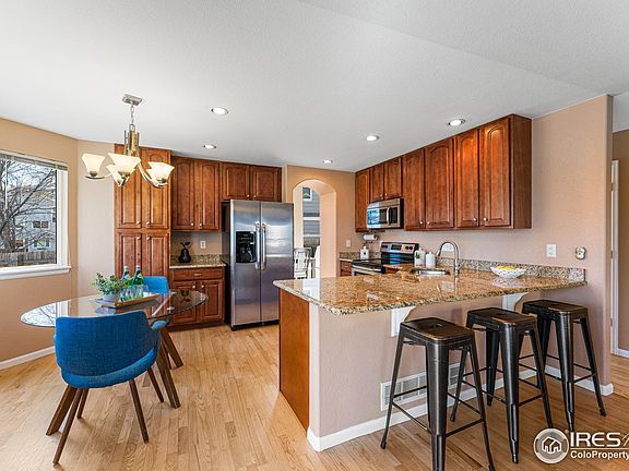 Beautiful, well-maintained home nestled in a quiet cul-de-sac and situated on a huge 11,737 sqft lot - the largest in desirable Arbor Estates! Natural light streams inside the brand-new windows and the vaulted ceilings. Open kitchen featuring granite counters, cherry cabinets, stainless steel appliances and plenty of eat-in seating adjoins the cozy family room with gas fireplace. A separate dining room gives you a formal space to entertain while an enormous Trex deck allows you to take the party outside. The sprawling backyard also includes a pergola, seven-zone sprinkler system, mature trees and perennials. Game of volleyball on the big lawn, you bet! Upstairs, the large primary bedroom boasts bay windows for lovely morning light, ceiling fan, walk-in closet and en-suite, five-piece bath with dual sinks. Two more light-filled bedrooms upstairs share another full bathroom. Non-conforming fourth bedroom with egress windows in the basement can also be used as an additional family room, office, gym, etc. Plenty of extra storage in the utility room. Other updates include new driveway, new carpet, new sump pump, and radon mitigation system. Three-car garage with storage racks and 12x16 workshop/shed with its own garage door and built-in shelving for all of your cars and toys. Take the Discovery Trail to Lake Arbor or enjoy the community pool, tennis courts and playground. Incredible location close to golf courses, amenities, public transport, Highway 36 and I-70. Welcome home!