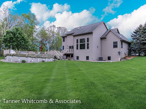 Picture perfect! The setting alone will sell you on this home! Located at the end of a private drive on a cul-de-sac, this contemporary 4 BR, 3.5 BA will dazzle and delight! Bright, open kitchen with SS appliances, granite, snack bar, eating area, walk-in pantry. Formal dining/office area. The great room is impressive with a cavernous ceiling, fireplace and large windows. Main floor master with ensuite! 3 BR, 1 BA and large loft/office area up. Expansive daylight lower level has a full bath, tons of storage, and ~1,600 sq ft for expansion, giving you ~4,000 sq ft. of living space when completed! 2.4 acres offers privacy and room to roam. The pool and large deck is a fun and relaxing place to spend summer days! Custom, quality-built, one owner home! Award winning Caledonia Schools!