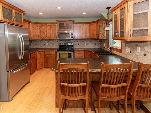 MOTIVATED SELLER WILL PAY TO BUY DOWN THE INTEREST RATE which will reduce the mortgage payment significantly for the first 2 years! This multi-level home is located in a quiet NW Mandan area. The home features a nice open floor plan. The kitchen was remodeled with custom Mission style cabinets with many pull outs, 4 lazy susan's, a granite sink, newer counter tops, Tile backsplash and newer appliances . The kitchen, dining and bath have bamboo hardwood floors. Just off of the dining room there is a large deck and patio leading to the mostly fenced yard with many large trees to enjoy plus there is a newer storage shed with concrete pad. There are 3 bedrooms on the upper level with a walk through bath from the primary bedroom. The updated bath has a tile surround. In the lower level there is a a gas fireplace in the family room, a 3/4 bath which has a beautiful tile shower and a newer vanity with granite sink. There is a large laundry room with almost new washer/dryer included. The 4th level has a bedroom (new carpet just installed) with 2 walk in closets, and a large storage room. The home had new steel siding and steel roof installed just 2 years ago. There are 9 newer windows, the water heater and furnace are newer. There is a sauna included in the lowest level.