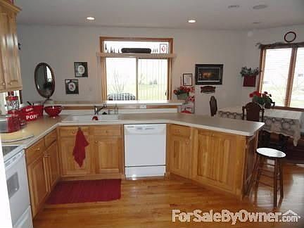 Single Family Home for sale by owner in East Grand Forks, MN 56721. Built in 1998, one owner. Spacious home is 2, 200 sq. ft. on main floor and 2,200 sq. ft. of unfinished basement. Features: vinyl siding, Integra windows, sprinkler system, landscaped, paver deck, double garage heated w/floor drain, storage above garage, 3 bedrooms includes large master suite, 2.5 baths, central vacuum, appliances, central air conditioning, gas fireplace, custom Hickory cabinets throughout the home, oak hardwood, ceramic & carpeted floors, main floor laundry, stero/TV sound system, custom wood blinds throughout, 9' ceilings, unfinished basement has poured concrete walls, 2 bedrooms & bathroom roughed in. Blocks from elementary and middle schools.